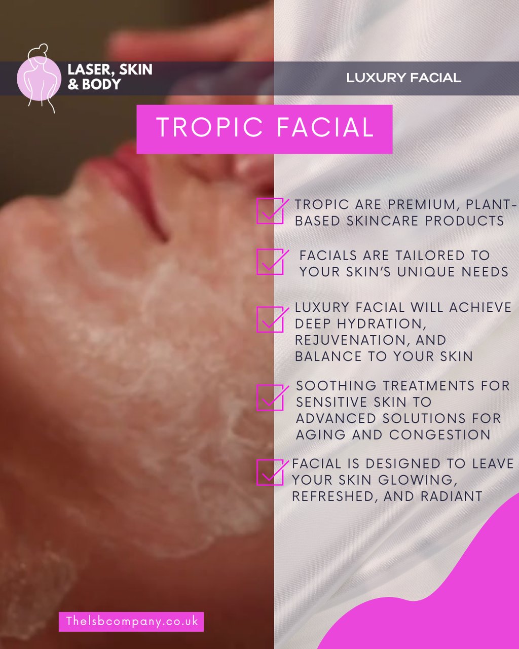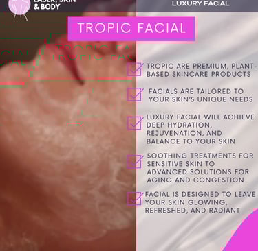 Discover the Tropic Facial at Laser Skin & Body Oldham. A luxury treatment using premium, plant-based skincare to leave your skin glowing, refreshed, and radiant. Book now!